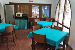 Bar cafetería con una terraza exterior con vistas panorámicas, y muy buen desayuno.